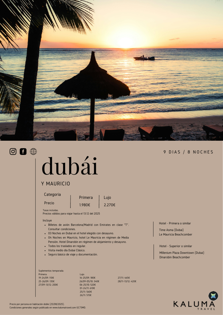 Dubai y Mauricio 8 noches - Salidas Diarias hasta Diciembre desde 2.180 €